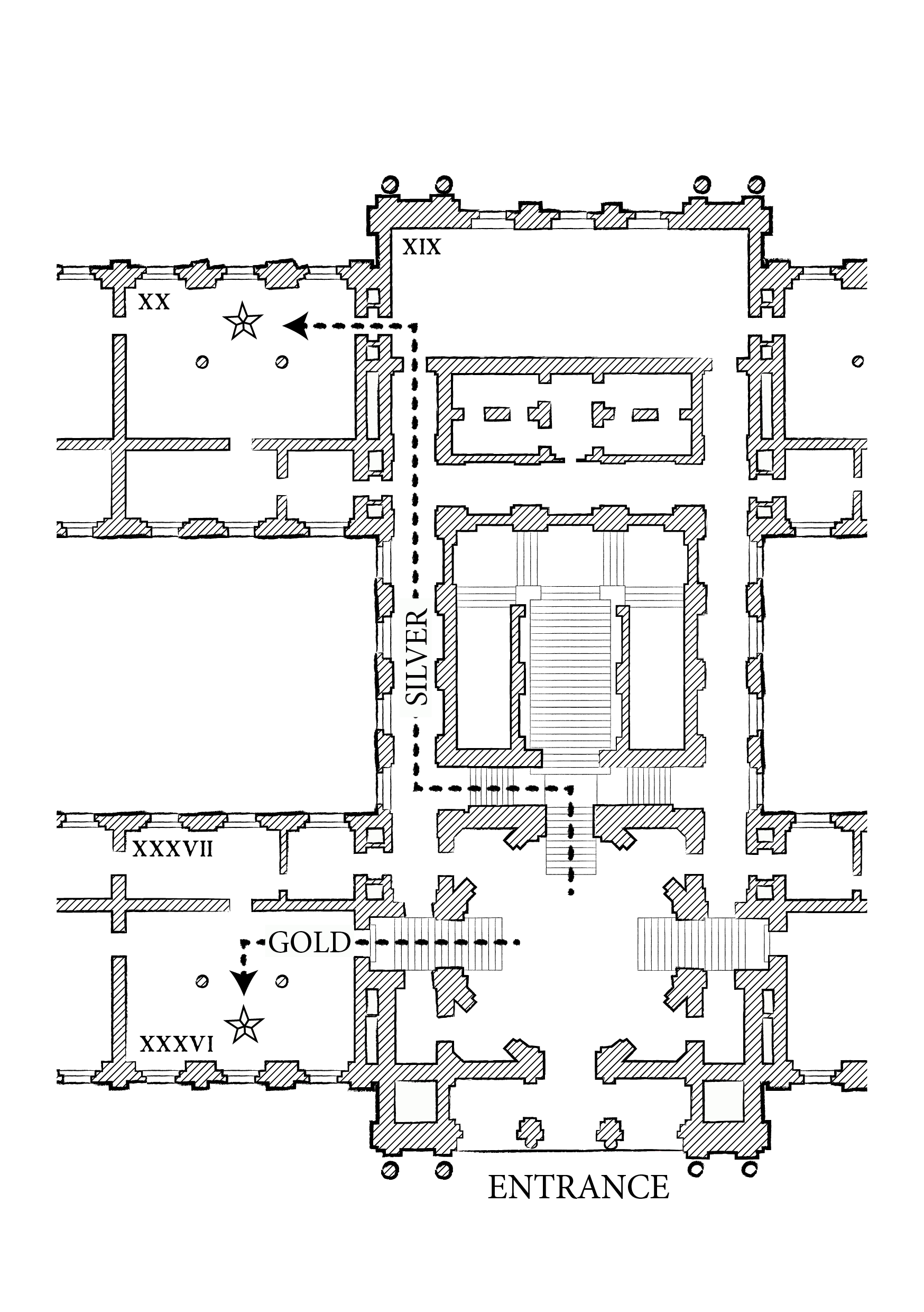 Your Mystery Hunt starts either in Room XXXVI (Gold Route) or in Room XX (Silver Route) – depending on your route. (See the map at the bottom of the page.)